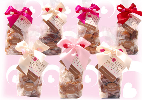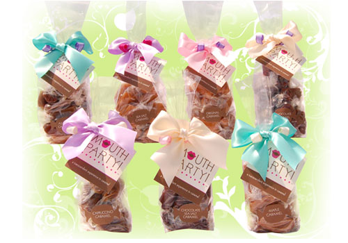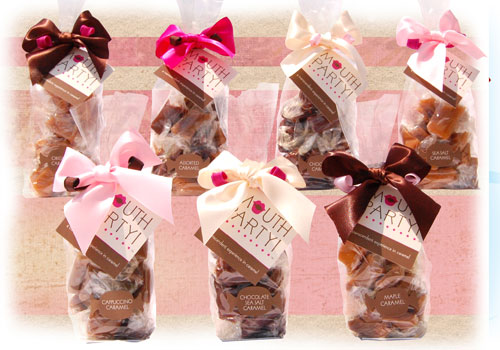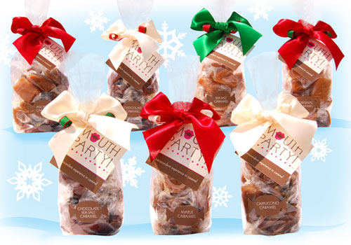 | Our standard packaging is replaced by holiday and special ribbon on several occasions throughout the year. Mouth Party caramels are perfect for any occasion. We encourage custom orders and are happy to work with customers to meet specific needs. The following are a few examples of holiday and special occasion packaging. |